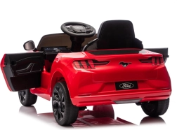 Das rote elektrische Kinderauto FORD Mustang Mach‑E ist die perfekte Wahl für kleine Liebhaber schneller Räder. Es bietet realistische Details von der Kühlergrill‑Optik bis hin zu originalgetreu gestalteten Lichtern und Felgen. Dank 24V‑Antrieb ermöglicht es eine gleichmäßige Fahrt, während die robuste Kunststoffkarosserie Kinderabenteuer souverän meistert.