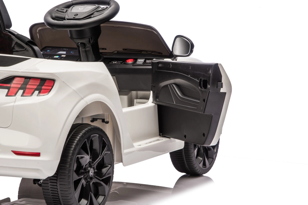 Der Fokus auf Komfort und Sicherheit wird durch den ergonomischen Sitz mit Sicherheitsgurt, ein übersichtliches Lenkrad und öffnende Türen für bequemes Einsteigen ergänzt. Ideal für kleine Auto‑Fans, die ihren eigenen „Mustang“ möchten.