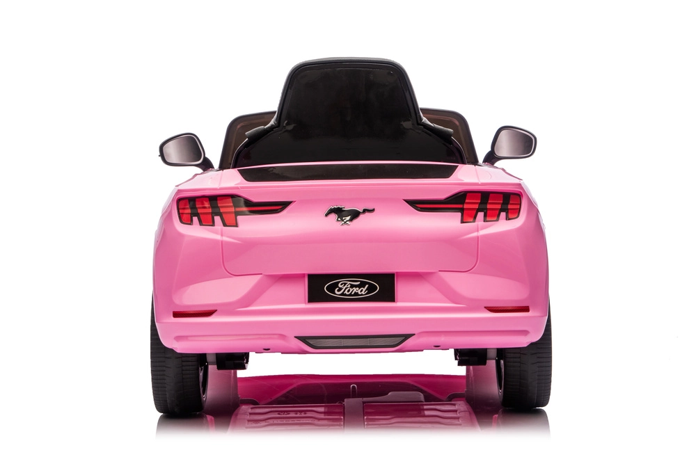 Das rosa elektrische Kinderauto Ford Mustang Mach‑E überzeugt mit modernem Look und durchdachten Details – von LED‑Scheinwerfern über sportliche Räder bis hin zum realistischen Cockpit mit Lenkrad und Hupe. Die robuste Konstruktion und hochwertige Kunststoffe gewährleisten Stabilität und Komfort beim Fahren.