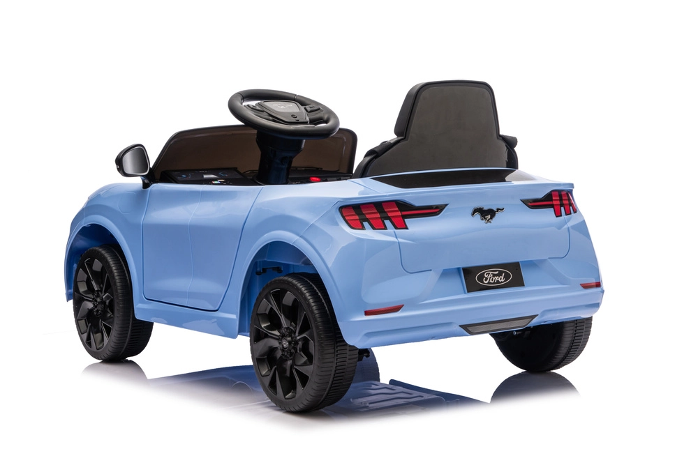 Das elektrische Kinderauto FORD Mustang Mach‑E 24V verbindet das moderne Design des ikonischen Fahrzeugs mit einer kindgerechten, sicheren Konstruktion. Realistische Details wie LED‑Leuchten, Rückspiegel und ein sportliches Cockpit sorgen für ein authentisches Fahrgefühl. Dank der öffnenden Türen fällt Kindern das Ein‑ und Aussteigen leicht, während der geformte Sitz und das gut greifbare Lenkrad Komfort und Sicherheit während der Fahrt unterstützen.