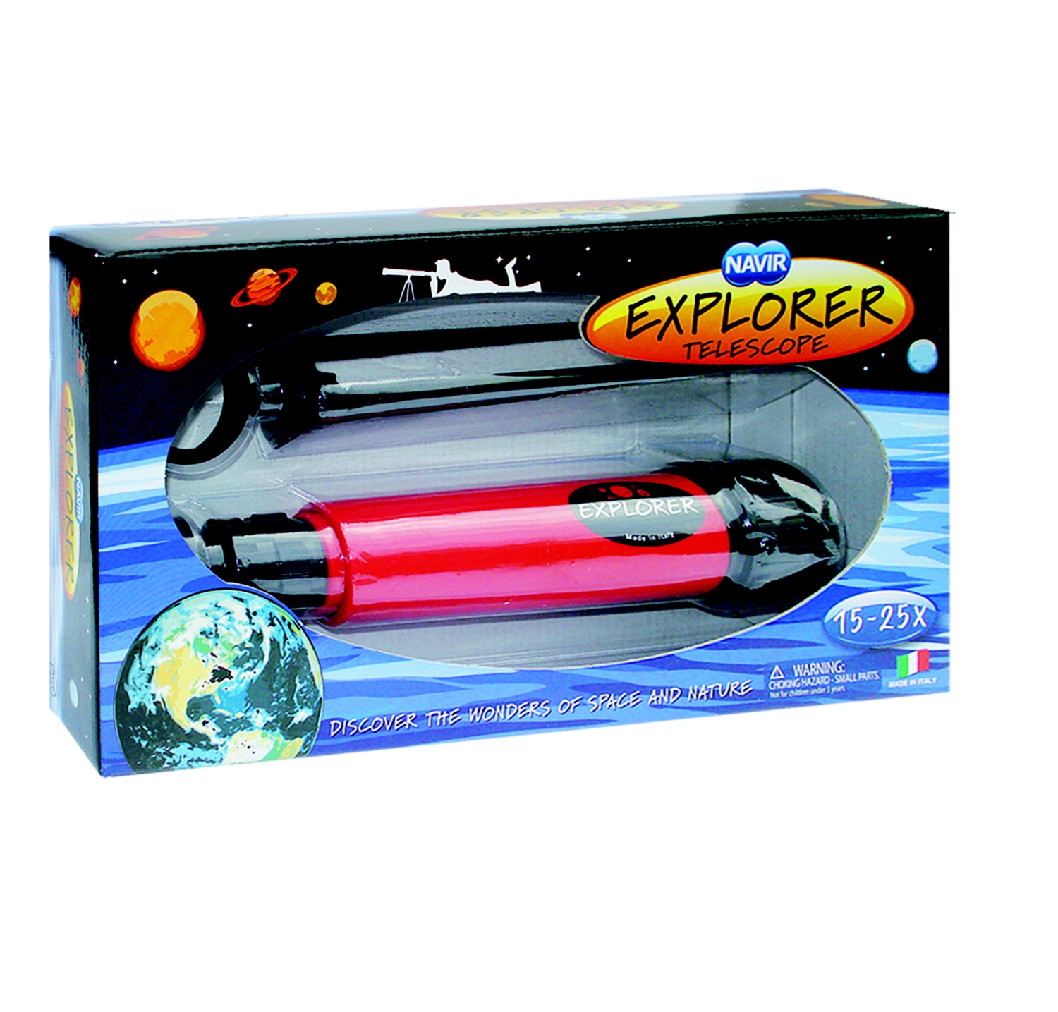 Das NAVIR Kinderfernrohr ist die ideale Wahl als erstes astronomisches Gerät. Dank der leichten Konstruktion und des stabilen Stativs lässt es sich leicht transportieren und sicher zu Hause wie im Freien verwenden. Die hochwertige Optik mit 35 mm Objektivdurchmesser und zwei austauschbaren Okularen bietet eine Vergrößerung von 15× und 25× – perfekt für Einsteiger.