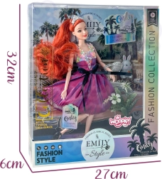 Puppe Emi bringt Kindern die Welt der Mode und Fantasie näher. Sie trägt ein bezauberndes rosa Kleid mit glitzerndem Oberteil und schwarzem Taillenband, eine silberne Krone auf dem Kopf und elegante Schuhe an den Füßen. Die langen, dichten Haare lassen sich kämmen und zu verschiedenen Frisuren stylen – so ist jedes Spiel anders und macht Spaß.