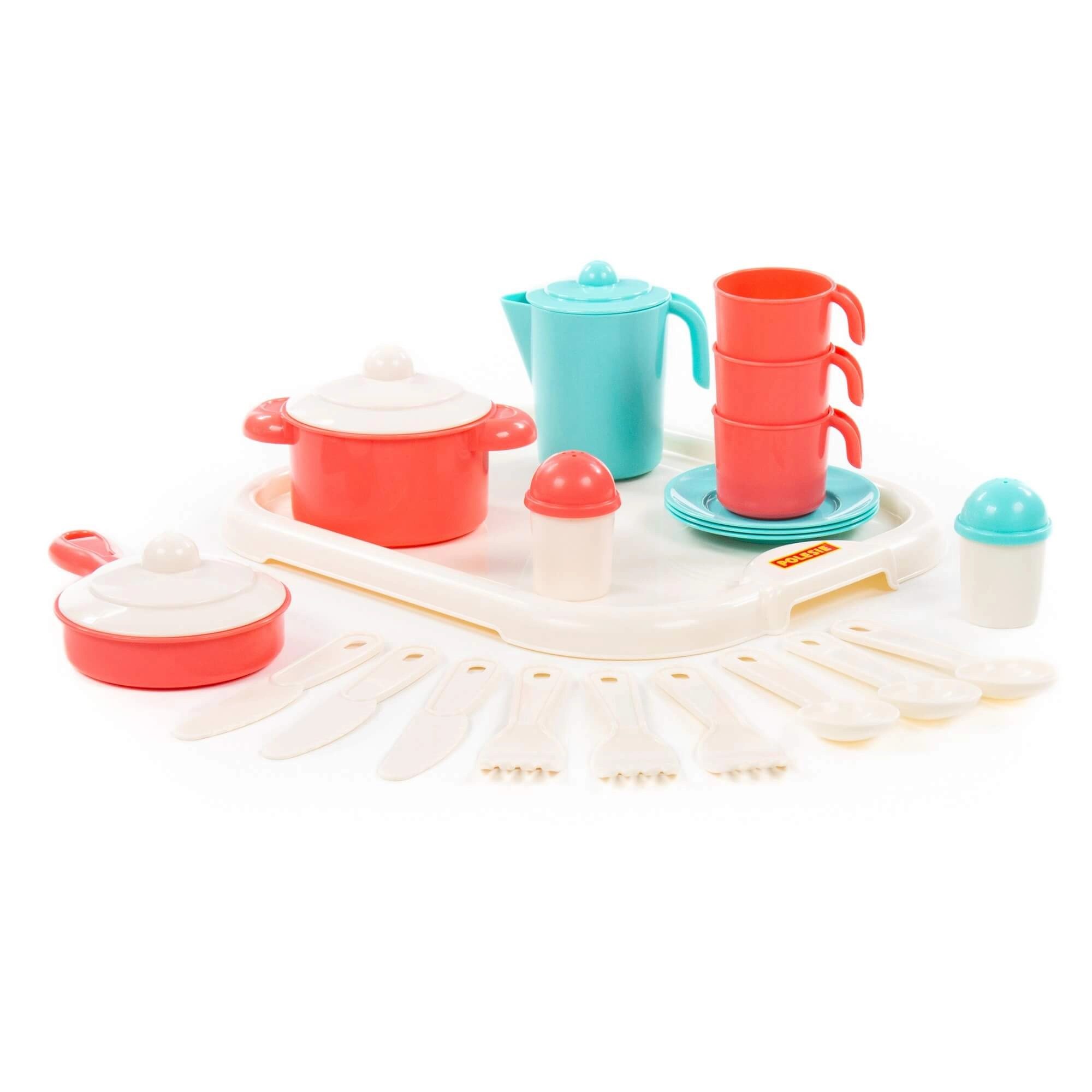 Das stilvolle Kinder-Teeset für drei mit Tablett Nastenka verwandelt jedes Spiel in eine echte Tee-Party. Es enthält alles Nötige zum Servieren von Tee und fördert Rollenspiele, soziale Fähigkeiten und die Fantasie. Ideales Spielzeug für Kinder ab 3 Jahren.