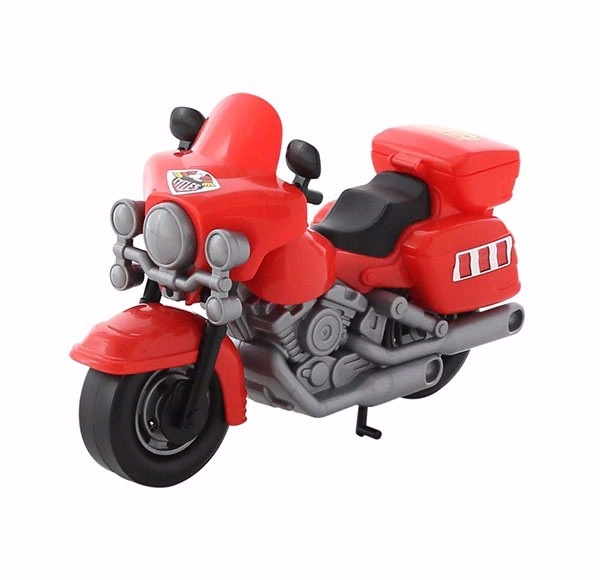 Dieses Kindermotorrad aus Kunststoff bietet tollen Spaß für kleine Fahrzeugfans. Dank der robusten Verarbeitung und frei laufender Räder eignet es sich für das Spielen zuhause und im Freien. Realistische Details wie Lichter, Auspuffe und Seitenboxen fördern kreatives und fantasievolles Spiel.