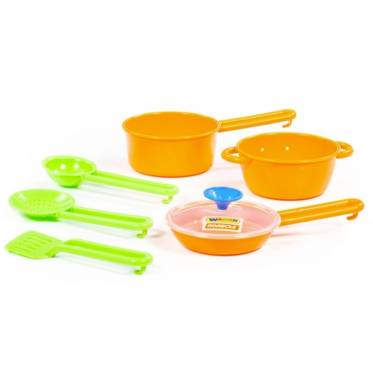 Praktisches Kinder-Kochgeschirr-Set für kleine Köche der Marke Wader. Enthält grundlegendes Küchenzubehör in kompakter Größe von 19 cm, ideal für sicheres Spielen ab 1 Jahr. Robuster Kunststoff, zwei Farbvarianten und Zertifizierung für Kinder 12+ machen es zur idealen Wahl für den Alltag zu Hause und in der Kita.