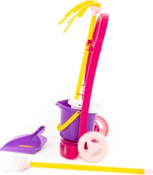 Enthalten sind Eimer mit Auswringer, Mopp, Handfeger und Kehrschaufel – alles angepasst an Kinderhände und sicheres Spielen.