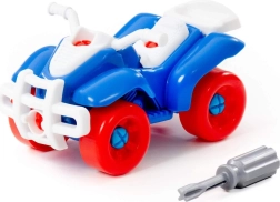 Inklusive Kinderschraubendreher. Kinder trainieren spielerisch Feinmotorik und Logik beim wiederholten Zusammenbauen des Quads.