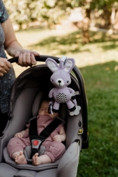 Dieser flauschige Hängehase wird der erste Freund Ihres Babys – zu Hause und unterwegs. Dank des universellen Clips lässt er sich leicht am Kinderwagen, Autositz, Bettchen oder Spielbogen befestigen. Der weiche Plüschkörper lädt zum Kuscheln ein, während rasselnde Ohren und kontrastreiche Details die visuelle und auditive Wahrnehmung fördern.