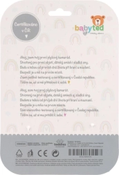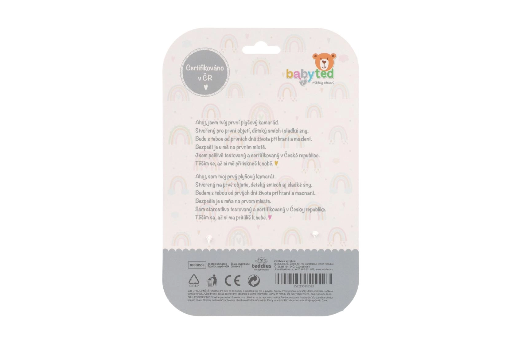 Im Inneren verbirgt sich eine sanfte Rassel zur Förderung des Hörsinns, in einer Ecke ein weicher Silikon-Beißring zur Linderung empfindlicher Zahnfleischstellen, und die Knoten an den Ecken unterstützen die Feinmotorik. Die praktische Größe von 25 × 25 cm passt perfekt ins Bettchen, in den Kinderwagen oder Autositz.
