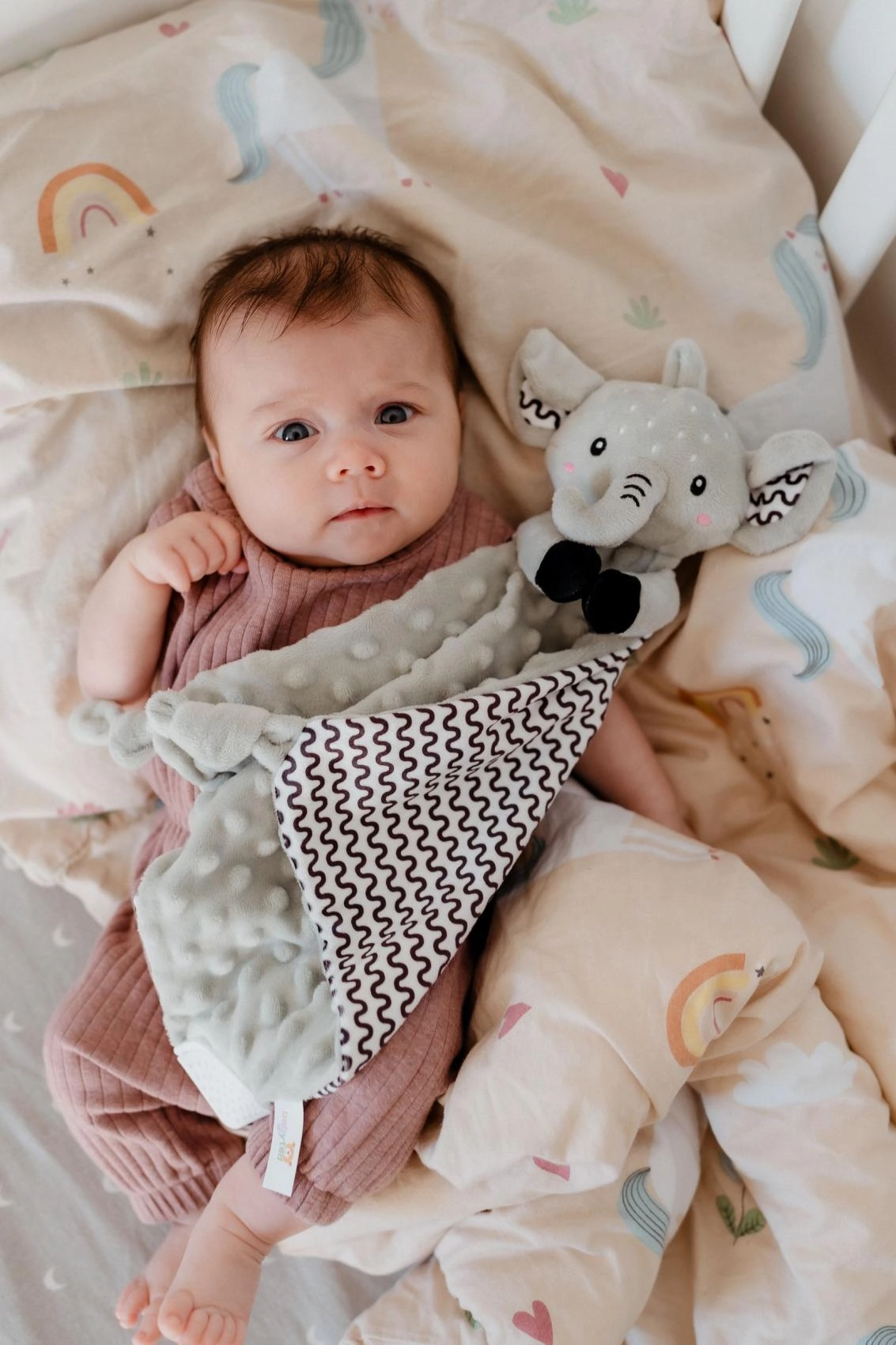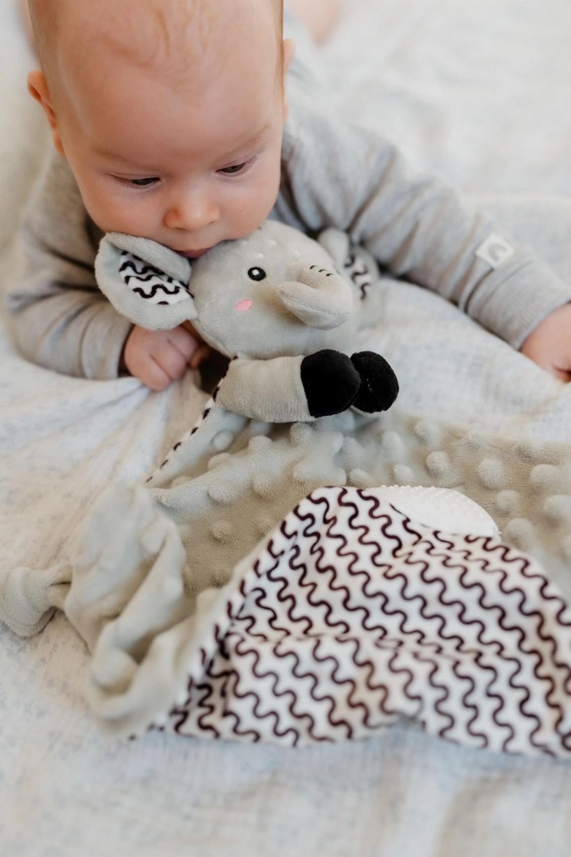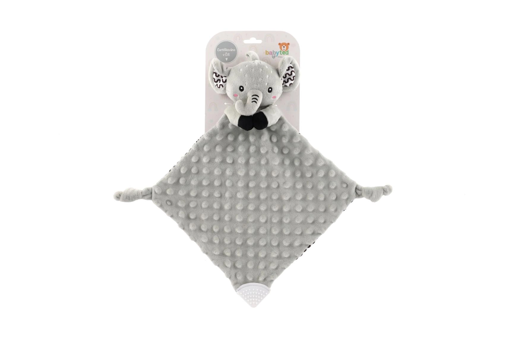 Schenken Sie Ihrem Baby einen beruhigenden Begleiter für jeden Tag. Das Elefanten-Schmusetuch von BABYTED besteht aus außergewöhnlich angenehmem Minky mit markanter 3D-Struktur, die den Tastsinn stimuliert und zum Kuscheln einlädt. Dank des leichten Designs und der Knoten an den Ecken können es auch die kleinsten Händchen mühelos greifen.