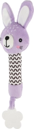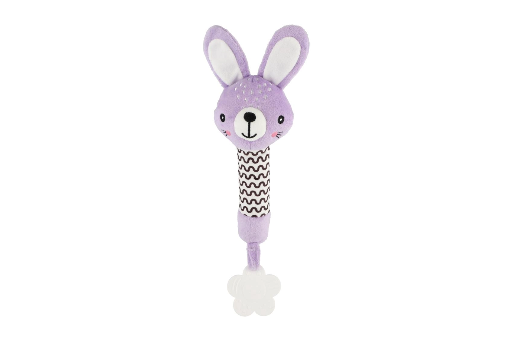 Der lilafarbene Plüschhase ist ein ideales erstes Spielzeug für Neugeborene. Die leichte Konstruktion und der lange, weiche Körper liegen hervorragend in kleinen Händchen; beim Drücken erzeugt er ein sanftes Quietschgeräusch, das natürlich die Aufmerksamkeit des Babys weckt und die Geräuschwahrnehmung fördert.