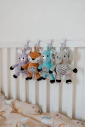 Der praktische Clip ermöglicht es, den Hasen schnell am Kinderwagen, Bettchen, Autositz oder an der Spielbogenstange zu befestigen – immer griffbereit zu Hause und unterwegs.