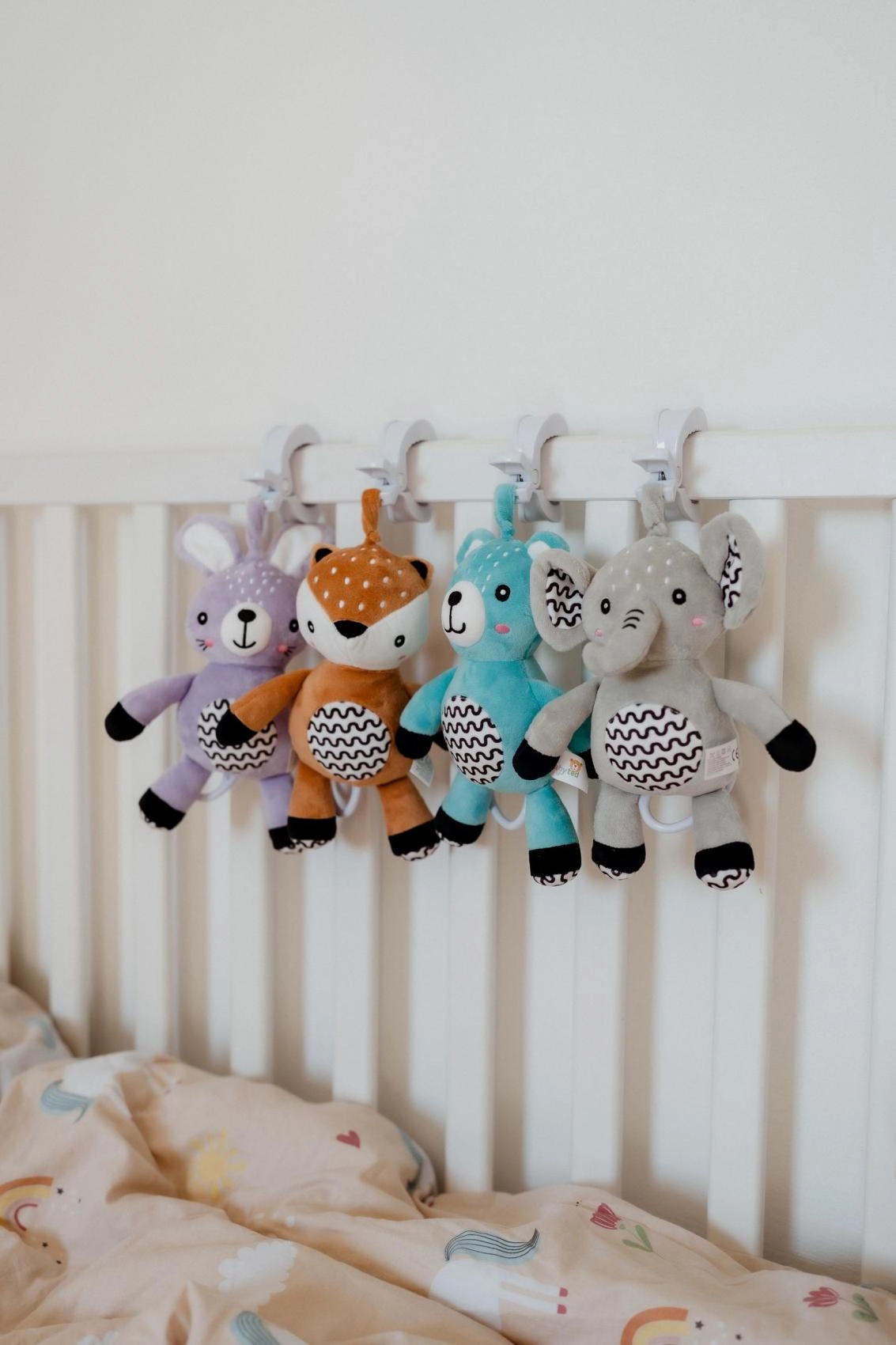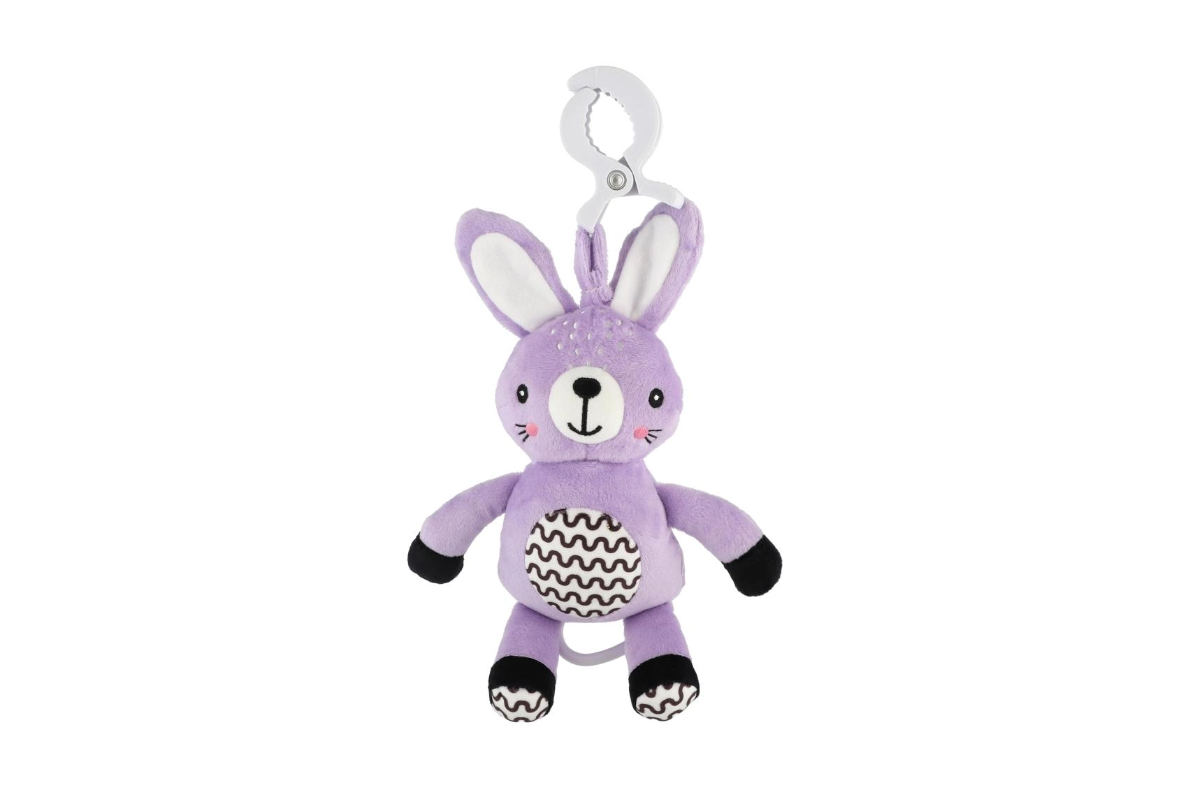 Dieser hängende Plüschhase bietet Babys Trost, sanfte Stimulation und sicheren Spielspaß zu Hause und unterwegs. Nach dem Aufziehen spielt das Spielwerk eine angenehme Melodie, die eine ruhige Umgebung für die Erholung schafft. Dank des universellen Clips lässt sich das Spielzeug leicht am Kinderwagen, Bettchen, Autositz oder Spielbogen befestigen.