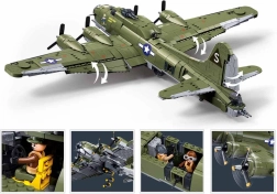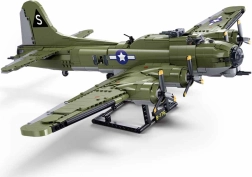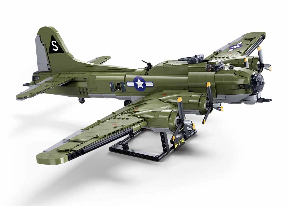 Das Modell bietet zahlreiche Funktionsmerkmale: einziehbares Fahrwerk, drehbare Propeller und bewegliche Teile an Flügeln und Seitenleitwerk zur Einstellung von Flug- oder Landekonfiguration. Enthalten sind ein Ständer mit der Bezeichnung B-17G und 3 Minifiguren der Crew mit Zubehör. Das Set ist kompatibel mit LEGO, Cobi und Mega Bloks, sodass Sie Ihr Modell problemlos um weitere Elemente erweitern können.