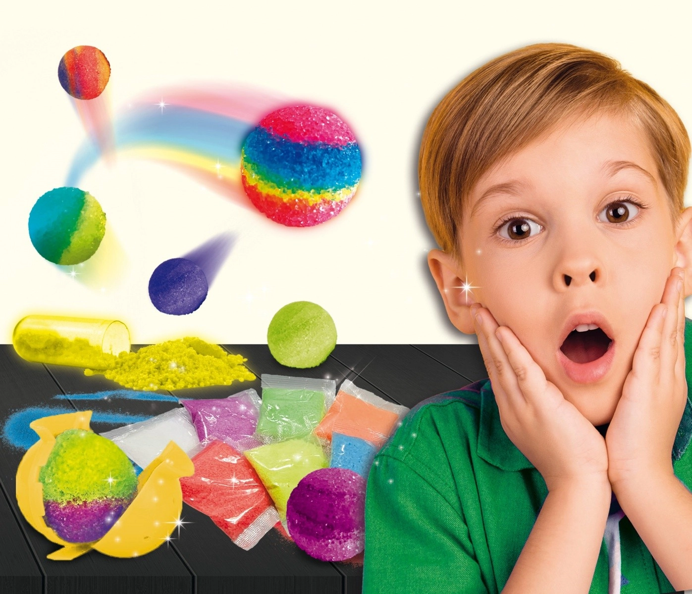 Das Set I'M A GENIUS – Ungewöhnliche Bälle verwandelt Experimente zu Hause in ein spannendes Spiel. Kinder haben alles zur Hand, was sie zur Herstellung eigener Springbälle benötigen, die dank spezieller Zusätze sogar im Dunkeln leuchten können. Jeder Produktionsschritt ist einfach und sicher, sodass sich auch Einsteiger ans Werk machen können.