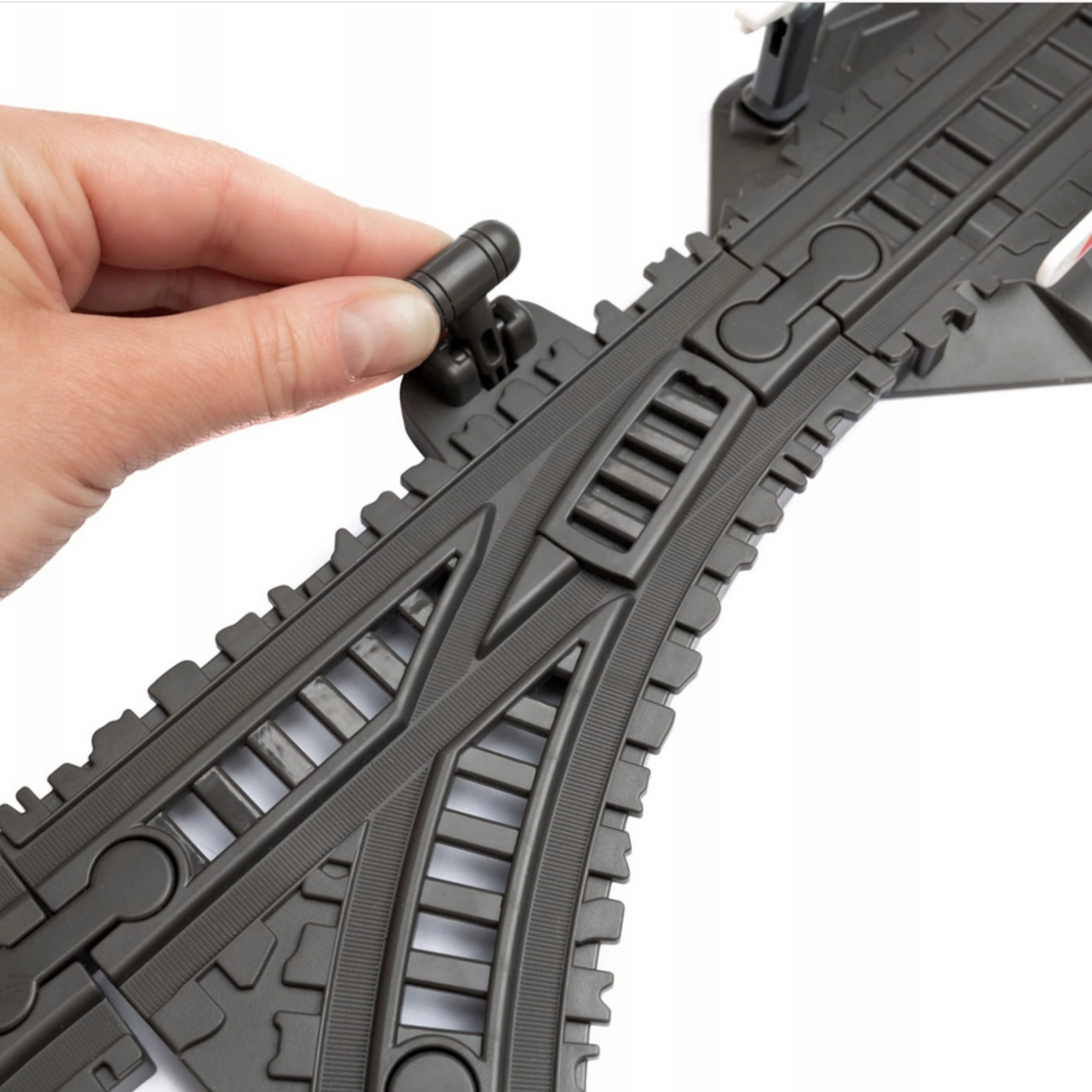 Die Schienen lassen sich einfach zusammenklicken, sodass Form und Länge der Strecke schnell verändert werden können. Ideal für kreatives Experimentieren mit verschiedenen Layouts.