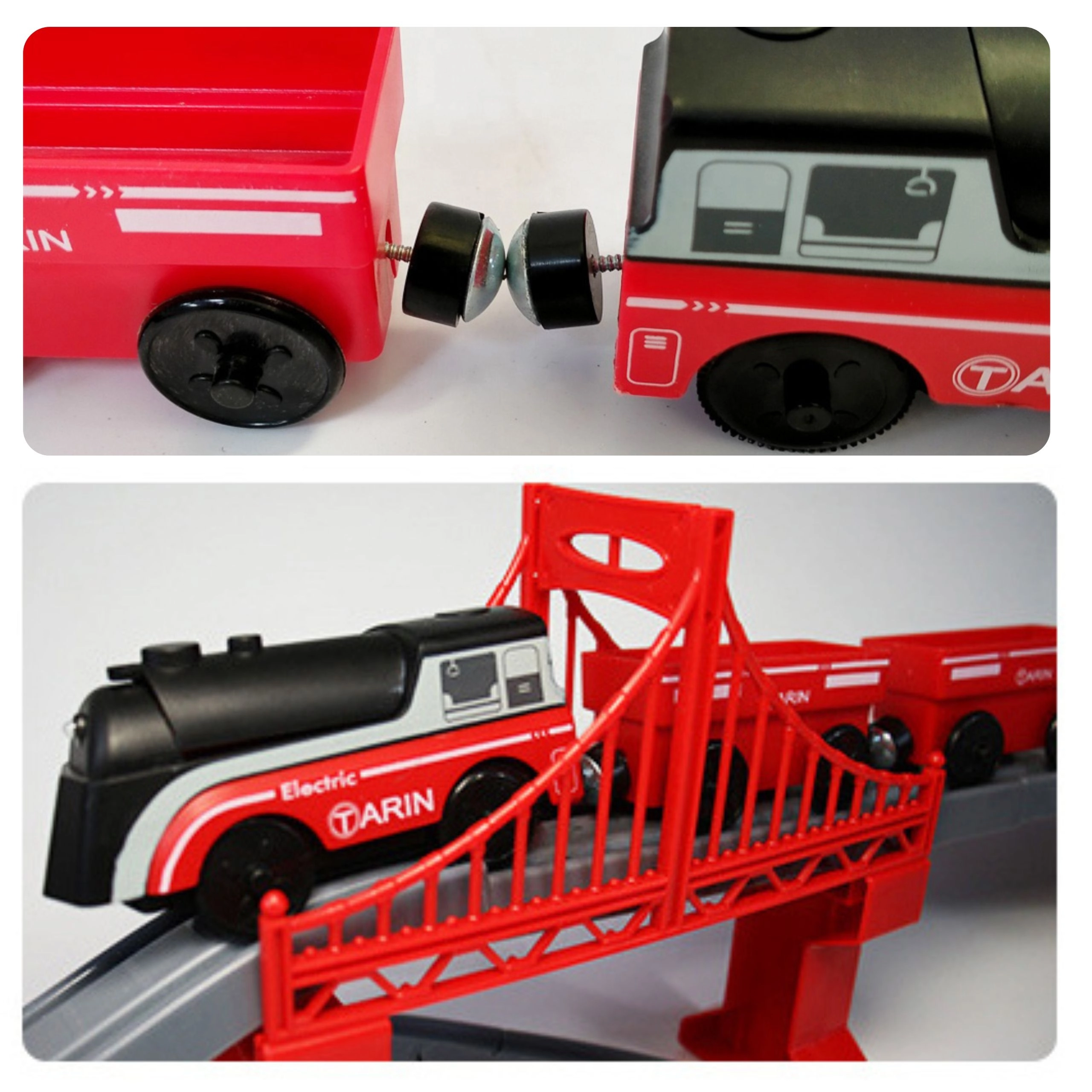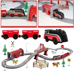 Die Lokomotive mit 1× AAA-Batterie bewegt den Zug über die Strecke und sorgt für authentischen Spielspaß. Kinder genießen eine gleichmäßige Fahrt über die Brücke und durch den Tunnel.