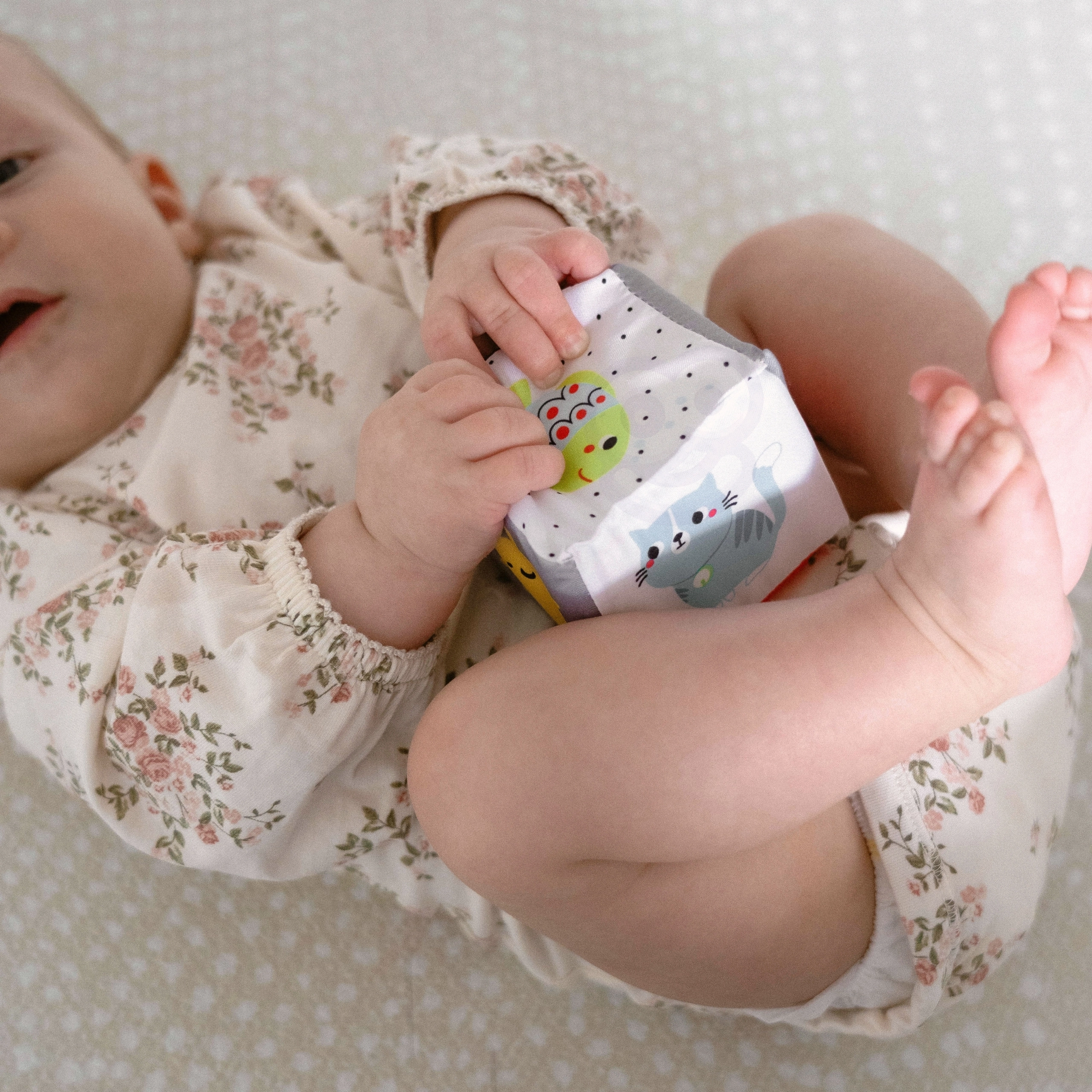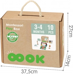 Diese sorgfältig zusammengestellte Montessori-Box enthält 6 didaktische Hilfsmittel, die das natürliche Lerntempo des Babys unterstützen. Kontrastmuster und Spiegel stimulieren den Sehsinn, weiche Textilien und Holz fördern den Tastsinn und sanftes Rasseln oder „Regen“ im Rohr regen den Hörsinn an. Alles ist so gestaltet, dass es zum Greifen, Umlegen, Rollen und zu ersten Entdeckungen von Ursache und Wirkung motiviert.
