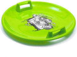 Die grüne Schlitterscheibe BABY MIX mit einem Durchmesser von 60 cm bietet Kindern und Erwachsenen eine schnelle und spaßige Fahrt. Hergestellt aus robustem Kunststoff, frostbeständig bis -20 °C, mit integrierten Griffen für sicheren Halt und einer Tragfähigkeit von bis zu 50 kg. Ideal für Hügel und präparierte Hänge.