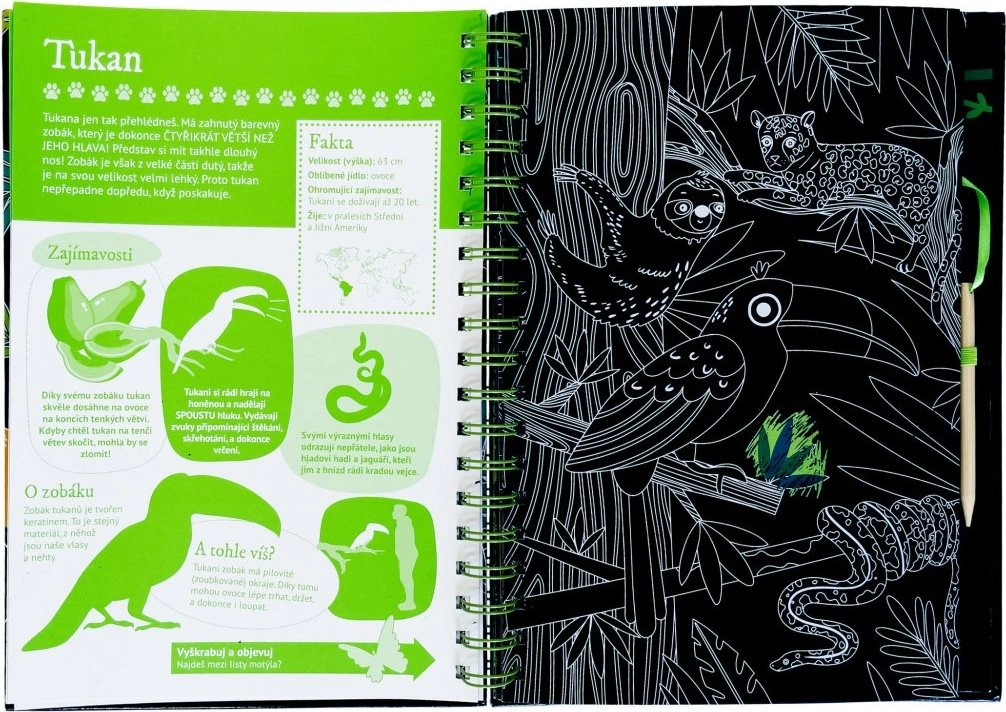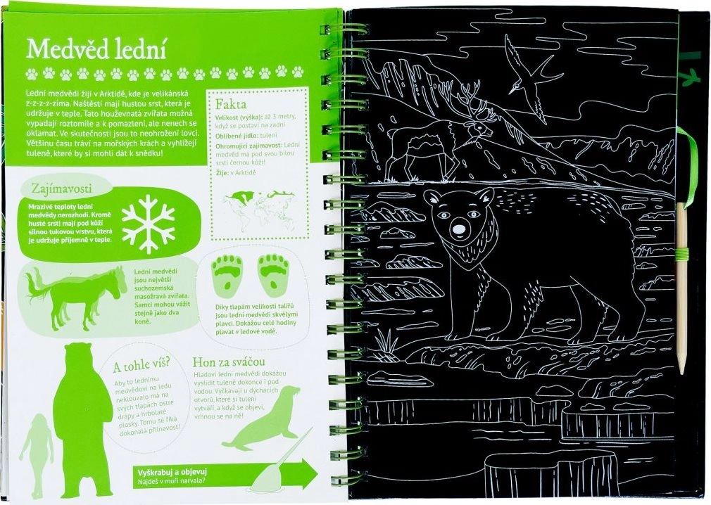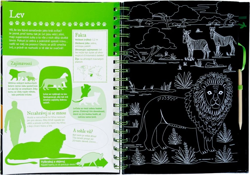 Dieses einfallsreiche Buch ist in zwei Teile gegliedert – der erste bietet einen Überblick über Tiere mit vielen interessanten Informationen und Fakten, ergänzt durch Ritzbilder, die Kinder mit ihrer Verspieltheit begeistern. Der zweite Teil enthält interaktive Aufgaben wie Quizfragen, Zuordnungen, Suchaufgaben, Zeichnen und Ergänzen, mit denen Kinder ihr neu erworbenes Wissen üben und sich stundenlang beschäftigen können.