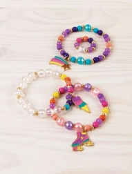 Enthält eine Vielzahl an bunten Perlen und Anhängern, die Ihren Kreationen einen bezaubernden Look verleihen. Diese Elemente sind ideal für kreatives Spielen und Spaß.