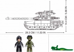 Drehbarer Turm, anhebbares Geschütz und laufende Ketten bieten ein authentisches Spiel- und Ausstellungserlebnis. Detaillierte Panzerung und Zubehör unterstreichen das Erscheinungsbild eines modernen Kampfpanzers.