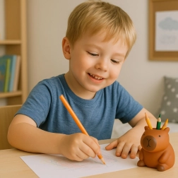 Dieser dekorative Organizer in Kapybara-Form besteht aus hochwertigem dekorativem Material mit matter Oberfläche und warmem Braunton. Die sanft gerundeten Linien wirken einladend und passen hervorragend in moderne wie gemütliche Interieurs. Die obere Öffnung/Säule ermöglicht eine übersichtliche Aufbewahrung von Schreibutensilien, Pinseln oder Kleinigkeiten.