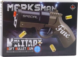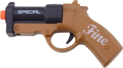 Die Mini-Pistole MARKSMAN FINE in Braun-Schwarz ist ideal für actionreichen Kinderspaß drinnen und draußen. Das robuste Kunststoffdesign, die kompakten Maße von 13,5 cm und die einfache Bedienung machen sie zum perfekten Begleiter zur Förderung von Koordination, Reaktion und Geschicklichkeit.