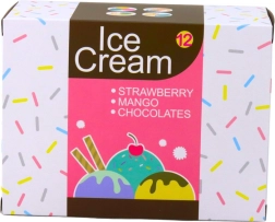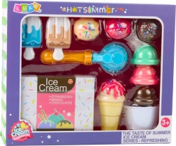 Bunte Plastikeis am Stiel und Waffeln mit Details wie „fließendem Topping“ und „Streuseln“ regen die Vorstellungskraft an und machen das Servieren noch unterhaltsamer.