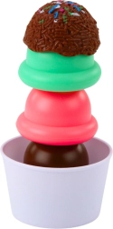 Bunte Eiskugeln lassen sich in die Höhe stapeln und trainieren so Koordination, Geduld und Geschicklichkeit der Kinder beim „Bauen“ von Desserts.