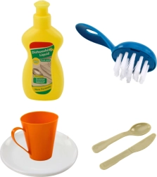 Das Set ist ideal für zu Hause, den Kindergarten oder als originelles Geschenk. Es ermöglicht Kindern, alltägliche Tätigkeiten nachzuahmen – Geschirr spülen, „Essen“ zubereiten und Ordnung halten – und fördert dabei Koordinations- und Sozialkompetenzen.
