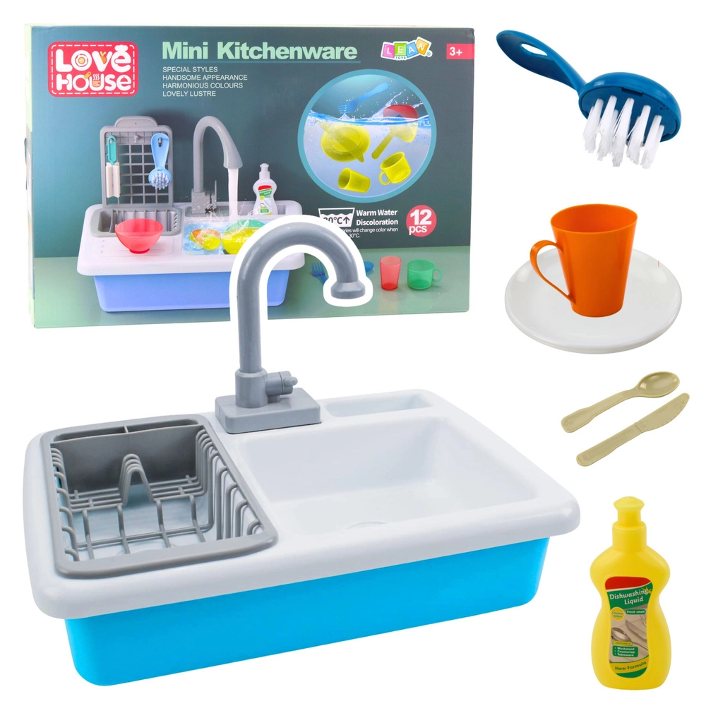 Das Mini-Küchenspülbecken bietet realitätsnahes Spiel dank echtem Wasserumlauf – einfach den Tank füllen und den Hahn öffnen. Magisches Zubehör, das unter warmem Wasser die Farbe wechselt, fasziniert Kinder sofort und weckt ihre Neugier. Harmonische Farben und sichere, abgerundete Formen sind auch für jüngere Kinder ab 3 Jahren geeignet.