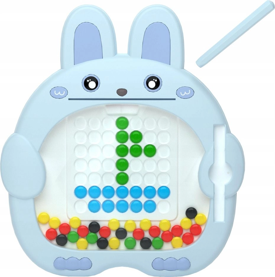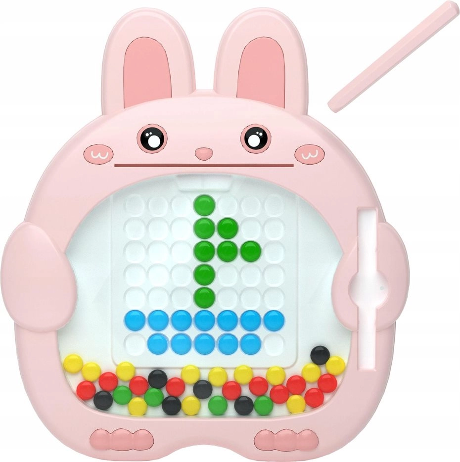 Diese kreative Magnettafel in Form eines niedlichen Häschens beschäftigt Kinder stundenlang. Der Magnetstift hebt und verschiebt die farbigen Knöpfe im Raster ganz leicht, sodass Kinder Schritt für Schritt Bilder nach eingelegten Vorlagen oder ganz frei gestalten können.