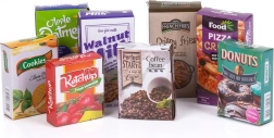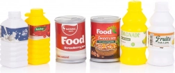 Papierschachteln für Lebensmittel sowie Kinderflaschen und Dosen verleihen dem Spiel Authentizität – ideal zum Erstellen von Einkaufslisten und Sortieren von Lebensmitteln.