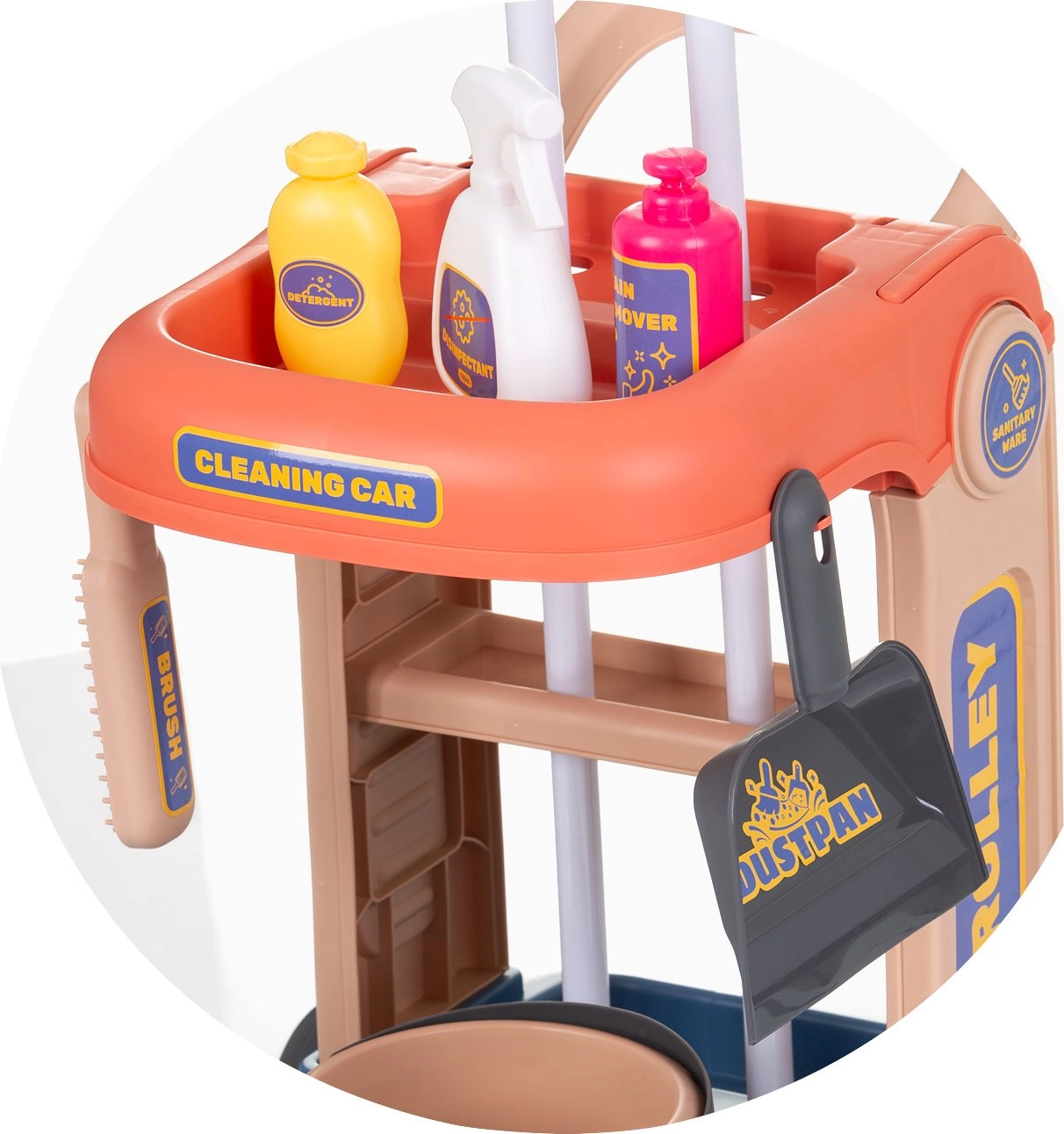 Der Kinder-Putzwagen CHIPOLINO ist eine tolle Möglichkeit, Kinder zu Selbstständigkeit und Verantwortungsbewusstsein zu führen. Der kompakte Wagen auf Rädern mit praktischem Griff fasst sämtliches Zubehör und erleichtert das Transportieren in der Wohnung. Realistische Accessoires wie Eimer mit Auswringer, Besen, Handfeger mit Schaufel sowie eine Sprühflasche für das „Putzen“ machen jede Aufräumaktion zu einem Spiel.