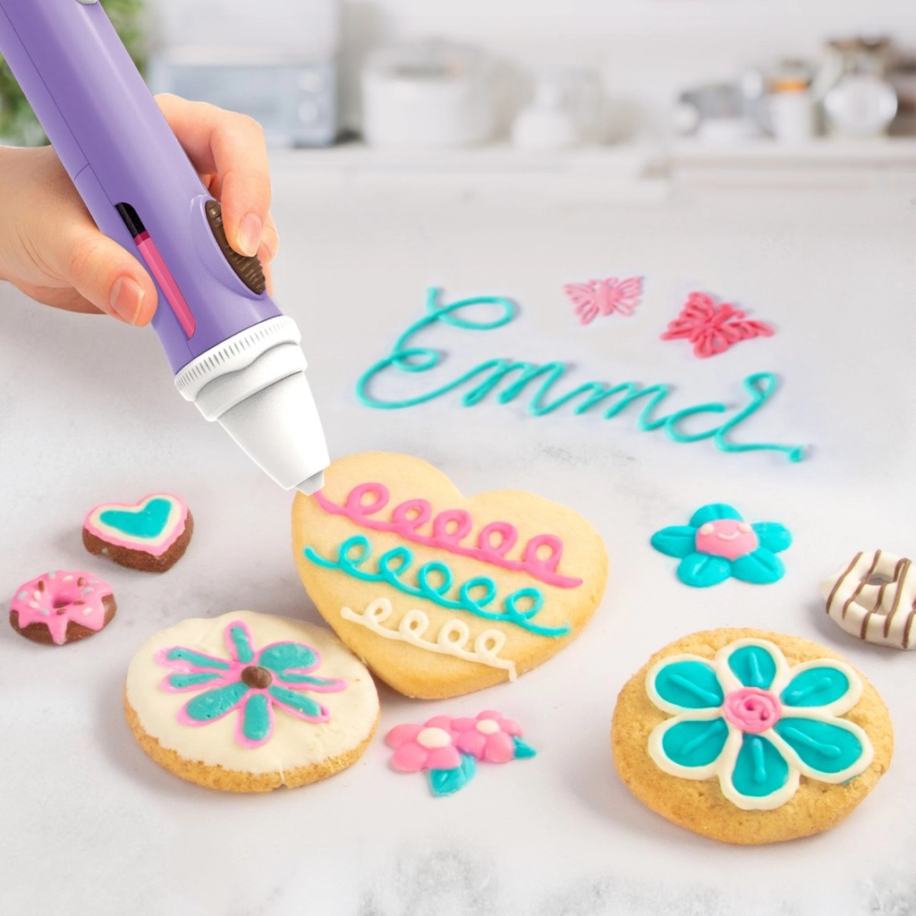 Verwandeln Sie süße Leckereien in kleine Kunstwerke. Der Schokoladenstift ermöglicht es Kindern, mit geschmolzener Schokolade zu schreiben, zu zeichnen und verschiedene Formen zu kreieren. Dank ergonomischer Handhabung und präziser Spitze liegt er auch in kleineren Händen gut, und die schnell aushärtende Schokolade sorgt für einen sofortigen Effekt auf Keksen, Cupcakes, Obst und anderen Delikatessen.