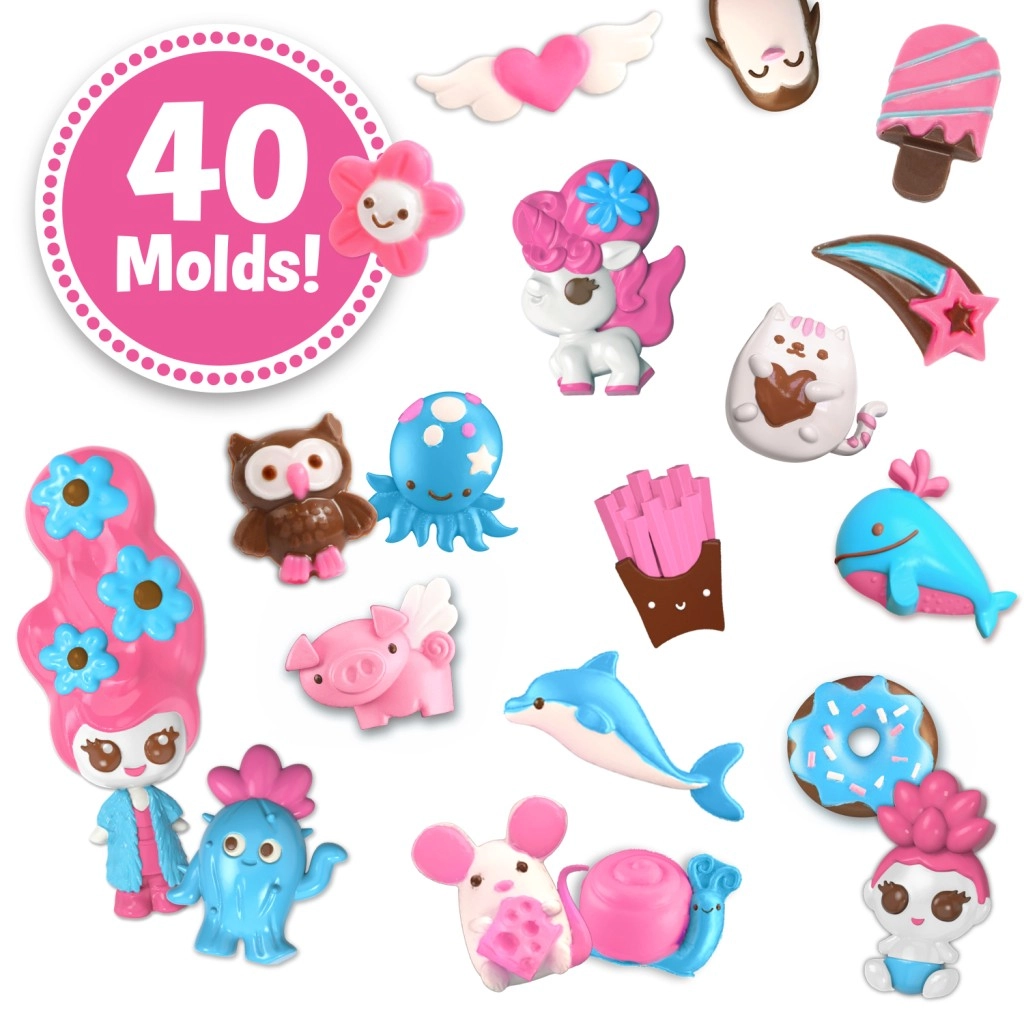 Zum Set gehören zwei transparente Formen mit insgesamt 50 Motiven – von Tieren über Herzen bis hin zu Blumen und Dekorationen. Kinder gestalten so mühelos wunderschöne Schokoladendekorationen und Figuren, die Familie und Freunde begeistern. Füllen Sie den Stift einfach mit geschmolzener Schokolade gemäß Anleitung, drücken Sie den Knopf und legen Sie los.