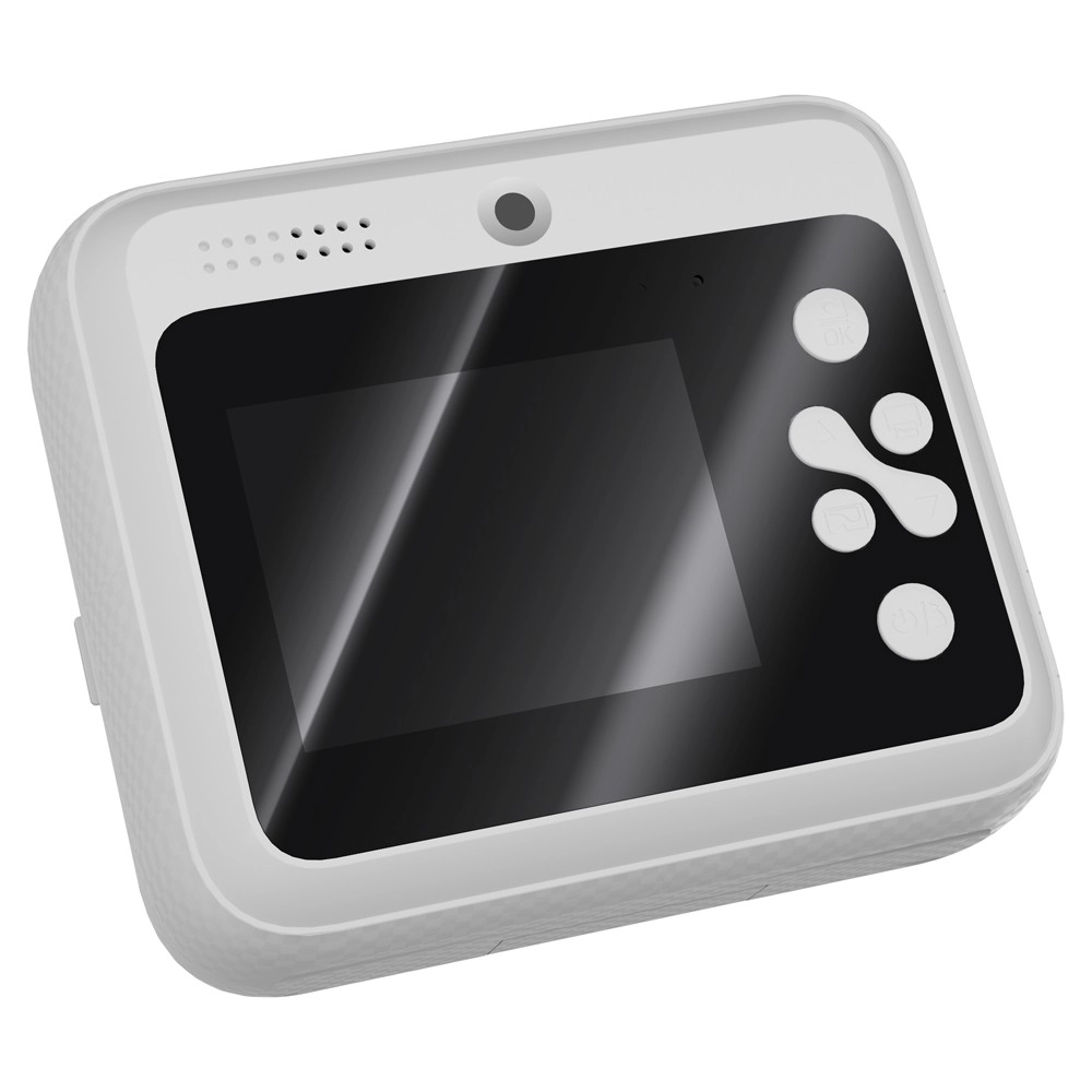 Auf dem 2,4"-Farbdisplay können Kinder Aufnahmen leicht ansehen, Modi wählen und Einstellungen anpassen. Der Selfie‑Modus erleichtert Selbstporträts und Gruppenfotos, vier integrierte Spiele sorgen für zusätzlichen Spaß. Mit der 1200‑mAh‑Batterie hält die Kamera bis zu 6 Stunden durch, das Aufladen erfolgt bequem über USB‑C. Der Speicher lässt sich mit einer microSD‑Karte bis 32 GB erweitern; im Lieferumfang sind zudem 2 Rollen Thermopapier, eine Trageschlaufe und Aufkleber enthalten.