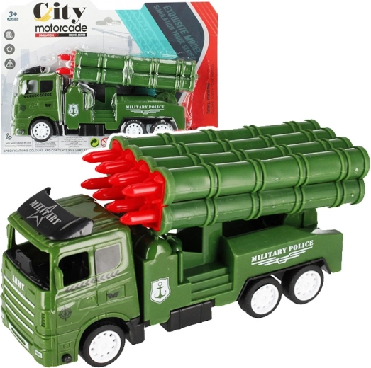 Entdecken Sie Abenteuer mit dem Militärfahrzeug mit Pull-Back-Antrieb: einfach nach hinten ziehen und loslassen. Dank der kompakten Maße eignet es sich perfekt für Rennen zu Hause und Soldatenspiele. Die robuste Konstruktion und die einfache Handhabung begeistern jeden kleinen Fahrer.