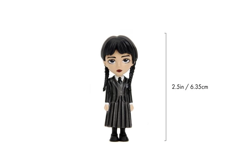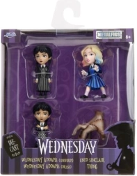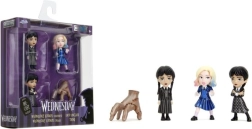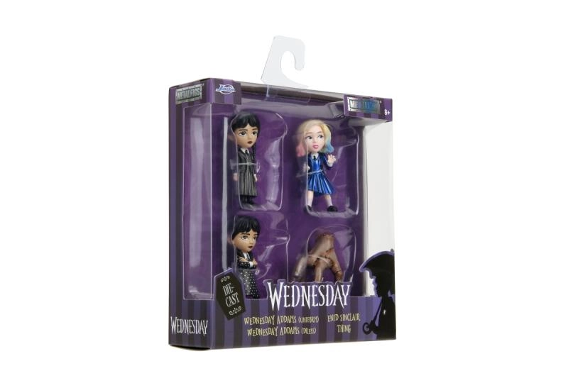 Holen Sie sich eine komplette Mini-Auswahl: Wednesday in zwei Outfits, Enid und die Hand. Perfekt als Ensemble im Regal oder in der Vitrine.