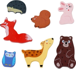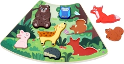 Dieses hochwertige Holzpuzzle mit Waldtieren begeistert kleine Entdecker ab 18 Monaten. Die robuste Einlegeplatte und die starken Teile in Form von Fuchs, Bär, Hirsch, Eule, Kaninchen, Igel und Eichhörnchen sind für kleine Kinderhände leicht zu greifen. Farbige Illustrationen unterstützen das Erkennen von Formen und Tieren und führen spielerisch an erstes Lernen heran.