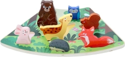 Stabile Holzteile und passgenaue Ausschnitte schulen den richtigen Griff, die Hand-Auge-Koordination sowie das Erkennen von Formen und Tieren.