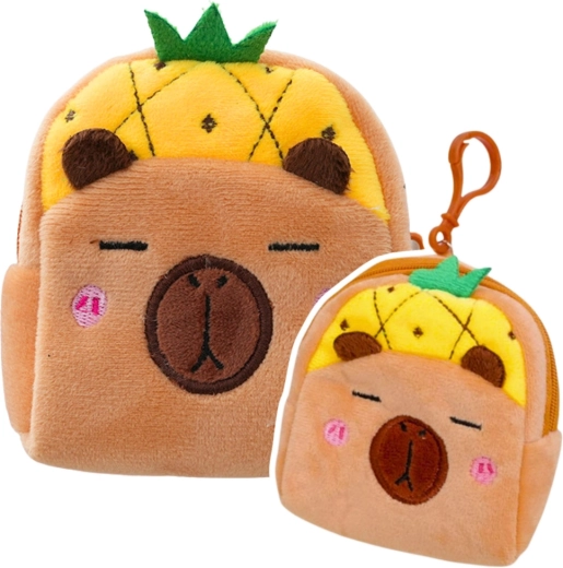Diese niedliche Plüsch-Geldbörse mit Capybara und Ananas-Mützchen fällt sofort ins Auge. Das weiche Material ist angenehm zu berühren, während der praktische Reißverschluss Münzen, Scheine, Schlüssel und kleine Accessoires sicher verwahrt. Dank des Karabiner-ähnlichen Kunststoffclips lässt sie sich leicht an Rucksack, Tasche oder Gürtelschlaufe befestigen.