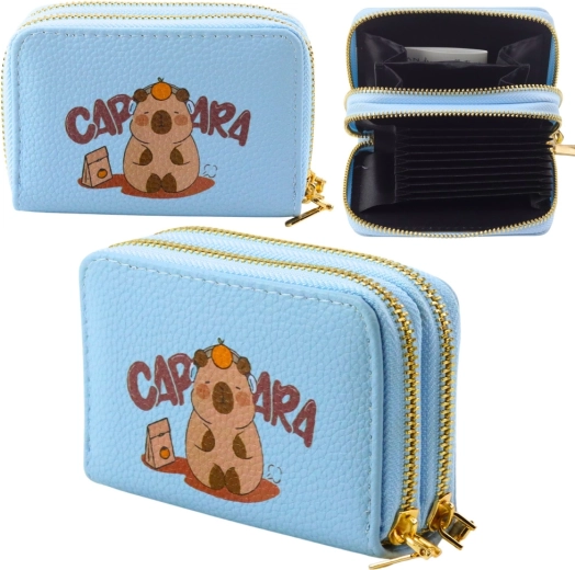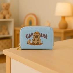 Diese hellblaue Geldbörse verbindet ein verspieltes Capybara-Design mit praktischer Organisation. Zwei goldene Reißverschlüsse trennen den Stauraum, sodass Sie Karten, Bargeld, Münzen und Belege problemlos sortieren können. Die innere Akkordeon-Konstruktion bietet schnellen Überblick und bequemen Zugriff.