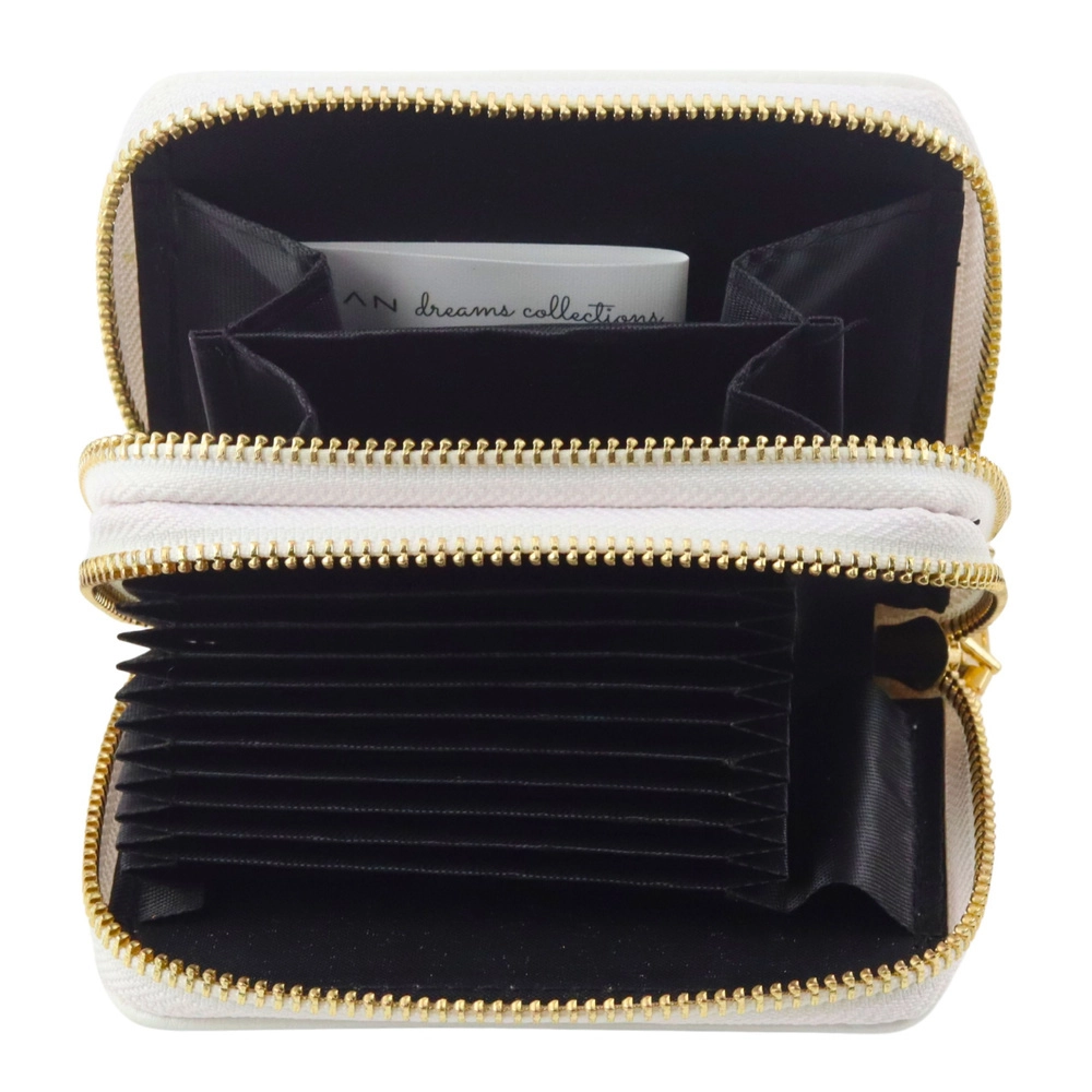 Trennen Sie Karten, Bargeld und Kleinigkeiten in zwei separaten Bereichen. Goldene Reißverschlüsse sorgen für ein sicheres und stilvolles Schließen.