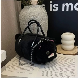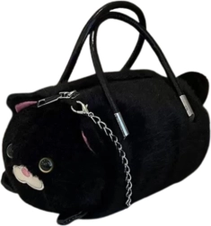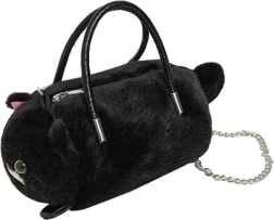 Diese schwarze Plüsch-Handtasche in Form einer süßen Katze bezaubert mit weicher Haptik und liebevoll ausgearbeiteten Details – mit Öhrchen, Äuglein und Schwanz. Dank ihrer kompakten Maße ist sie perfekt für das Nötigste, egal ob für die Stadt, die Schule oder als verspielter Akzent zu Freizeit-Outfits.