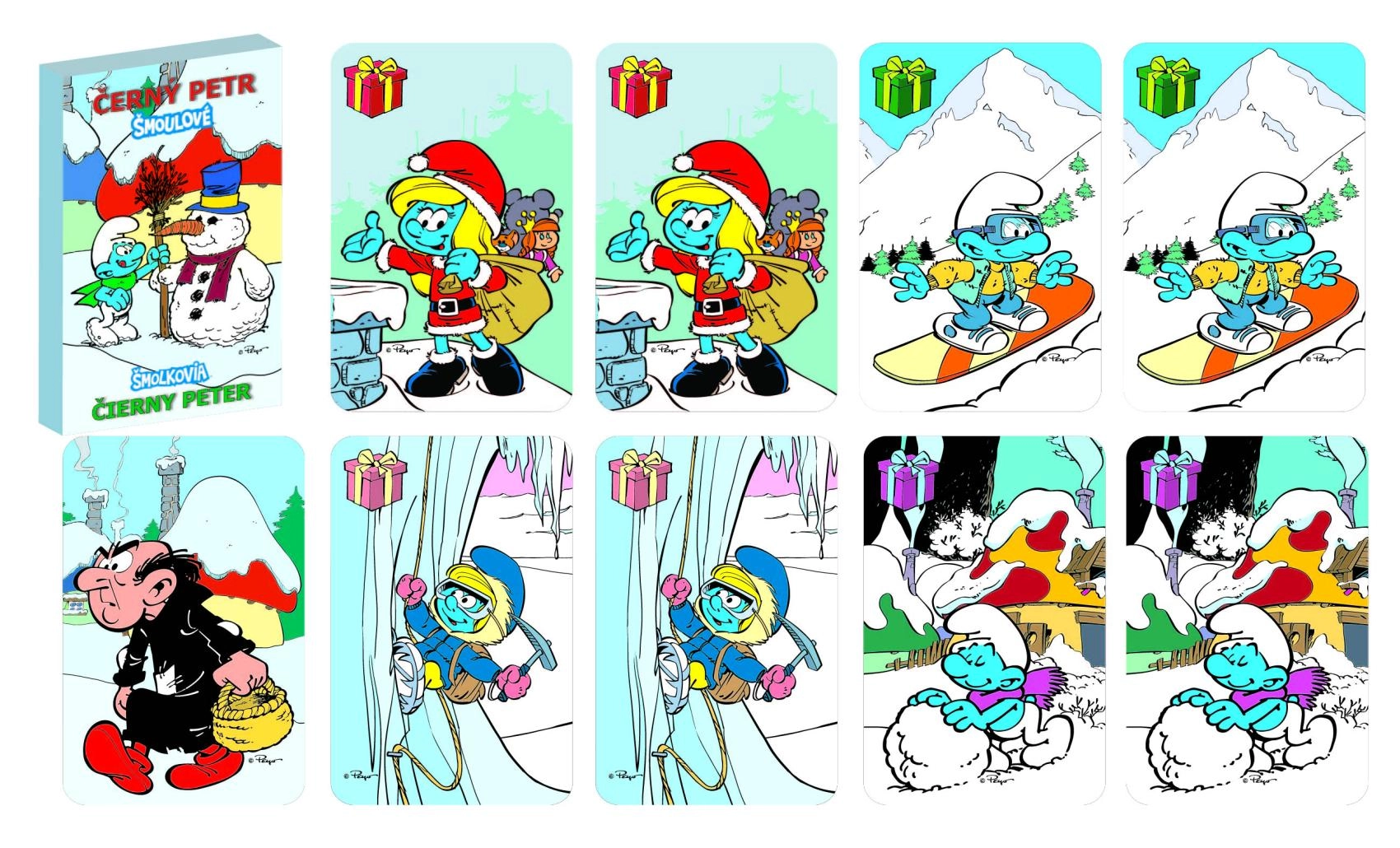 Das traditionelle Kartenspiel Schwarzer Peter mit winterlichem Schlumpf-Motiv begeistert Kinder und Erwachsene. Die Spieler suchen passende Paare und versuchen dabei, die Schwarzer-Peter-Karte zu vermeiden. Einfache Regeln, schnelle Runden und fröhliche Illustrationen der SCHLÜMPFE machen dieses Spiel zur idealen Wahl für Familienabende und unterwegs.