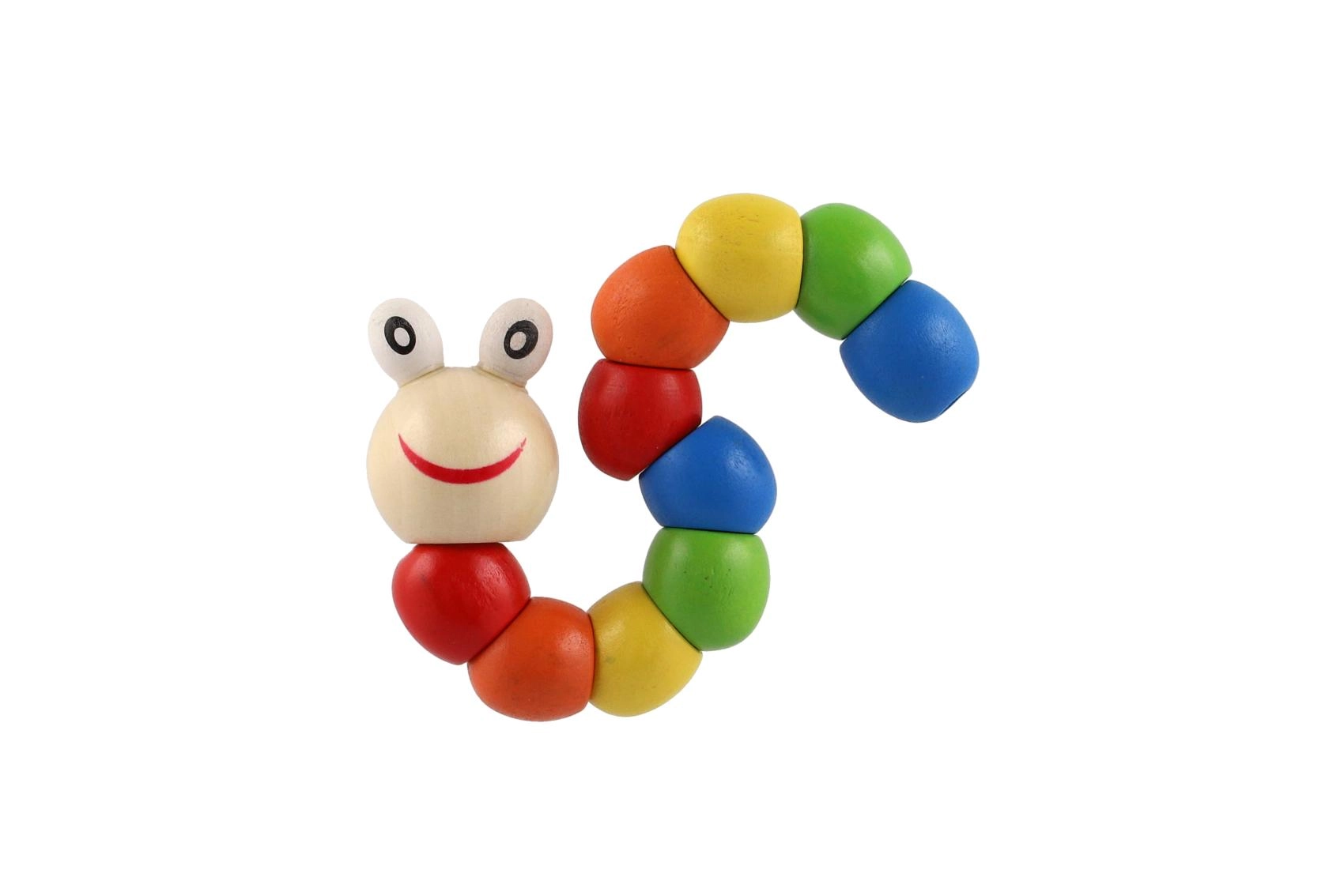 Diese bunte Holzraupe ist ein klassisches Manipulationsspielzeug, das Kinder ganz natürlich zum Trainieren von Feinmotorik, Hand-Auge-Koordination und Kreativität anregt. Die einzelnen Segmente sind mit einem verdeckten Gelenk verbunden, sodass das Spielzeug sanft gebogen, verdreht und in Grundformen gehalten werden kann.