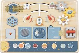 Dank der hochwertigen Holzkonstruktion und der detailreichen Weltraumgrafik ist die Tafel attraktiv und langlebig. Sie eignet sich ideal für das Spielen zu Hause sowie für Kinderecken und hilft, Selbstständigkeit und Geduld nach den Montessori-Prinzipien zu entwickeln.
