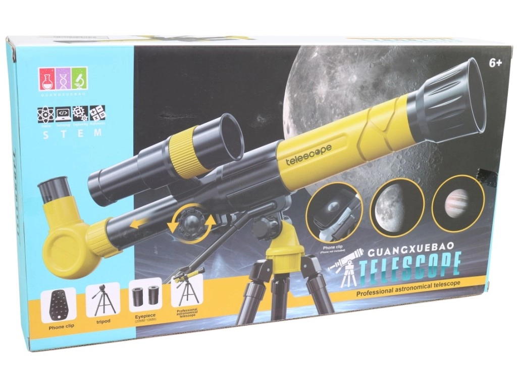 Dieses Kinder-Teleskop ist eine detailgetreue Nachbildung eines echten astronomischen Instruments und unterstützt Neugier sowie die ersten Schritte in die Welt der Astronomie. Dank der drei Stufen der Vergrößerung 20x / 30x / 40x genießen Kinder die Beobachtung des Mondes, der Sterne und ferner Objekte in der Landschaft.